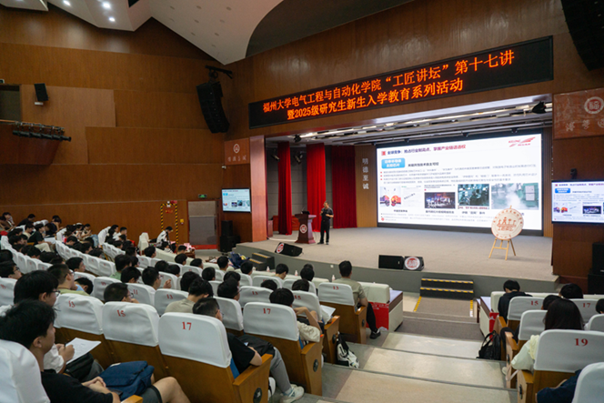 此外,学院精心打造的“工匠讲坛”品牌活动也在9月16日迎来第十七讲,邀请到科华拓扑与控制技术总工易龙强先生。易总工从行业领军企业的视角,分享了电力电子领域的最新技术趋势与挑战,提出工匠精神不仅是个人核心竞争力的源泉,更是企业品牌壁垒和国家产业链话语权的根基,号召全体工程师以持续创新支撑“双碳”目标与全球数字经济,用千万次锤打铸就华夏伟业的不竭动力,成为数字化时代最可靠的基石。这场讲座有效拓展了学生的专业视野,架起了从课堂理论到产业实践的桥梁。