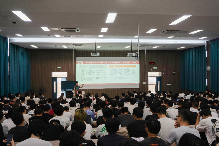 在筑牢思想根基的基础上,学院进一步强化价值引领。9月16日下午,党委副书记杜领军老师为全体新生带来题为 “坚定理想信念,勇担时代使命” 的专题报告,将新生入学教育的思想内涵提升到新的高度。