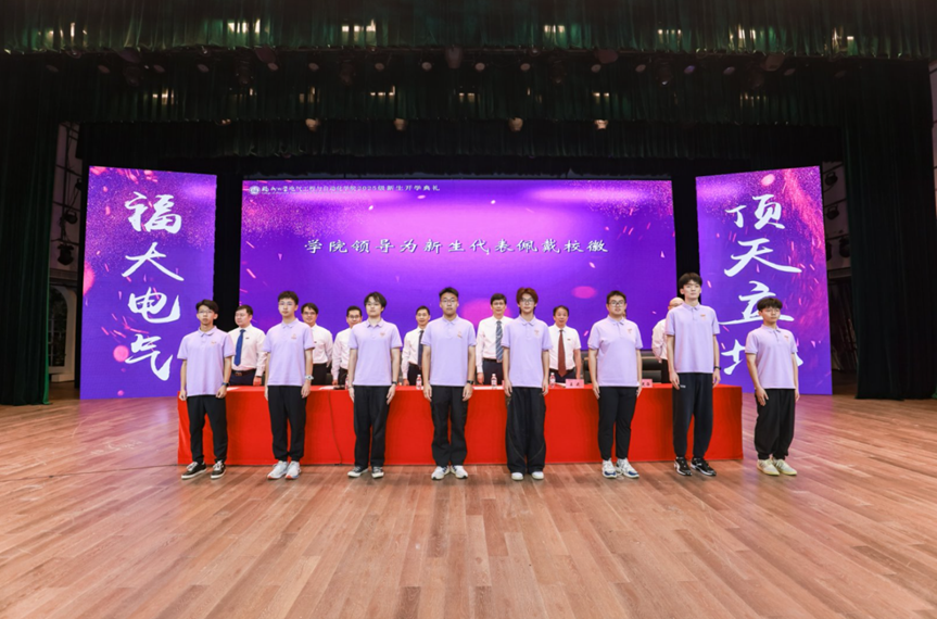 学院领导为新生代表佩戴校徽