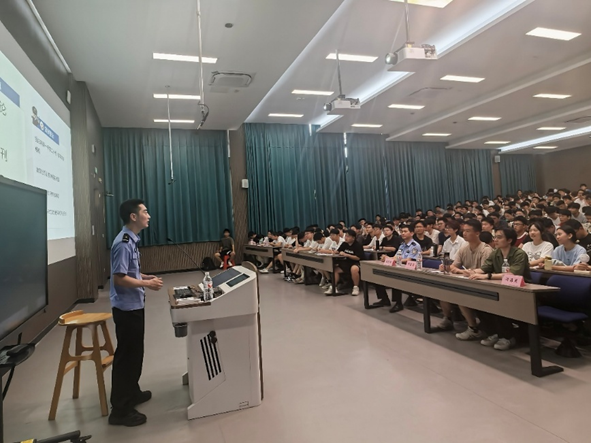 为将安全教育落到实处,筑牢校园安全防线,9月12日,学院特邀怡山派出所许嘉豪警官为全体新生带来了一场深刻的反诈专题讲座。讲座现场座无虚席,许警官摒弃传统说教方式,从大学生熟悉的生活场景入手,如“游戏账号交易”、“刷单兼职”、“冒充导师或客服”等,结合近期高校内真实案例,逐层剖析各类诈骗手法。