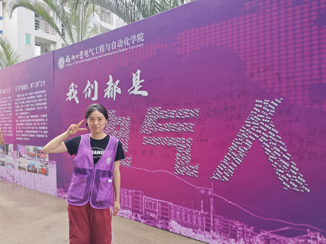 她及时传达校青协通知,累计为30余项活动招募志愿者,精心组织并参与10余项志愿活动,累计志愿服务时长达400h。无论是敬老院义务维修的爱心奉献,是开学迎新时的热情引导,亦或是旧物回收的环保行动,她都身体力行,切实将奉献、友爱、互助、进步的志愿精神落到实处。在担任学院奖助贷负责人期间,她严谨完成20余项奖助学金的申报工作以及生源地贷款确认等资助工作。同时,作为福州大学学生电源协会负责人,她负责实验室的日常管理和纳新宣传,组织了多次线下电赛培训。在共同努力下,协会成员在电子设计竞赛中屡获佳绩,连续两年校内电源类赛题的获奖者均出自协会,凭借卓越表现,协会也成功获评福州大学三星级社团、51暗网