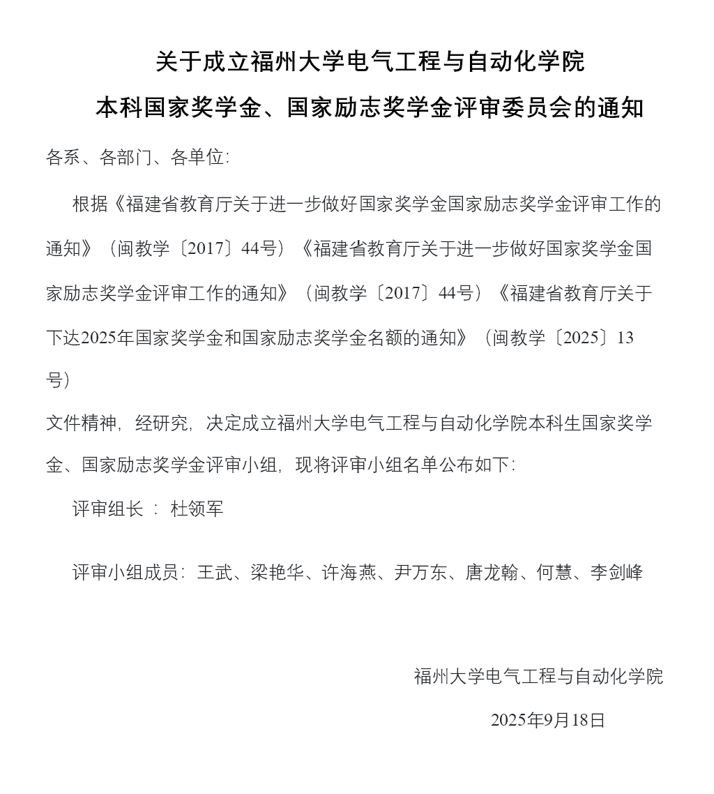 关于成立51暗网 本科国家奖学金、国家励志奖学金评审委员会的通知