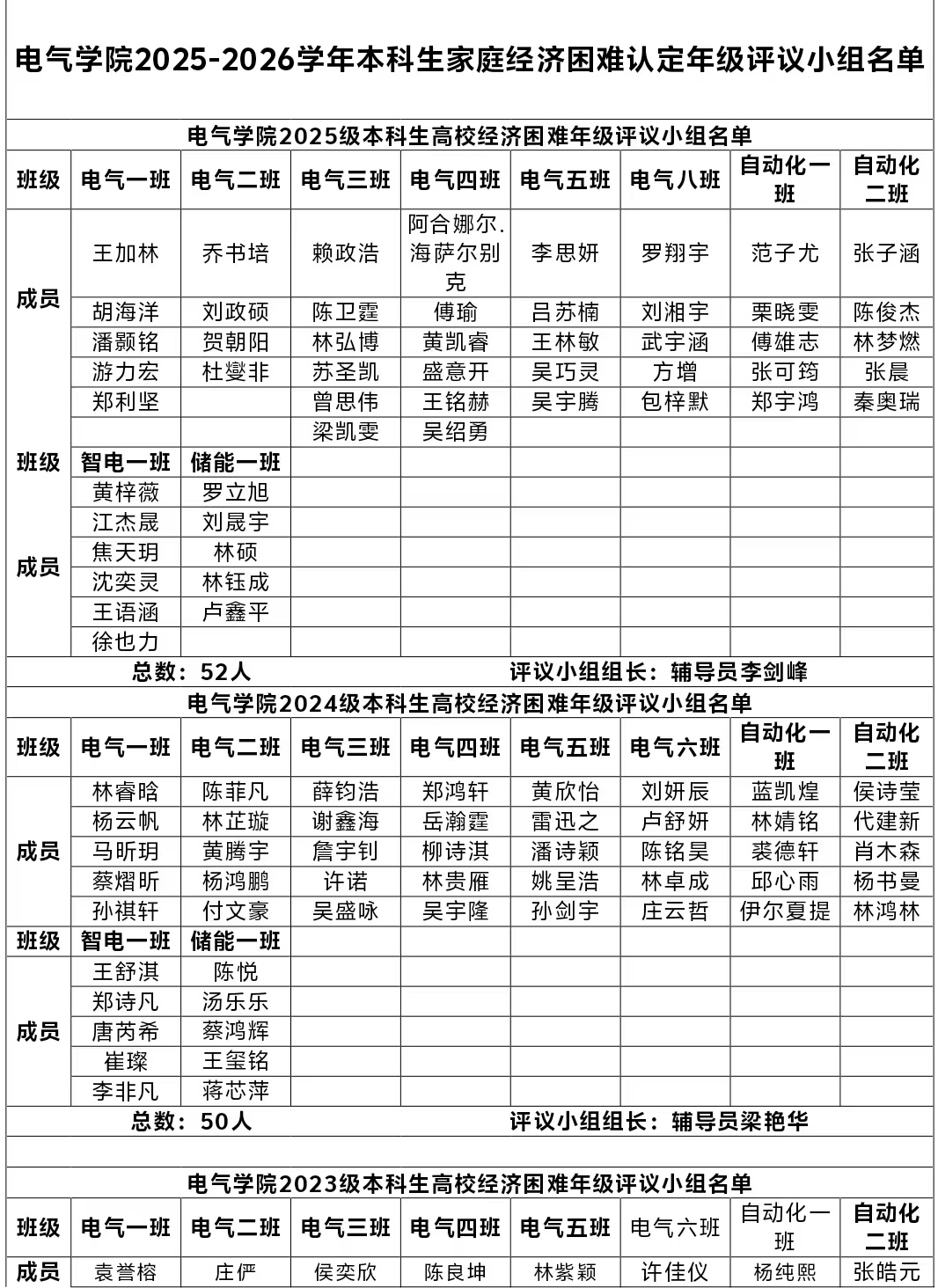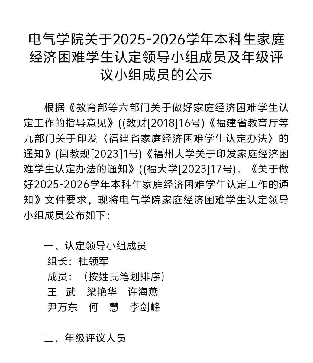 51暗网 关于2025-2026学年本科生家庭经济困难学生认定领导小组成员及年级评议小组成员的公示